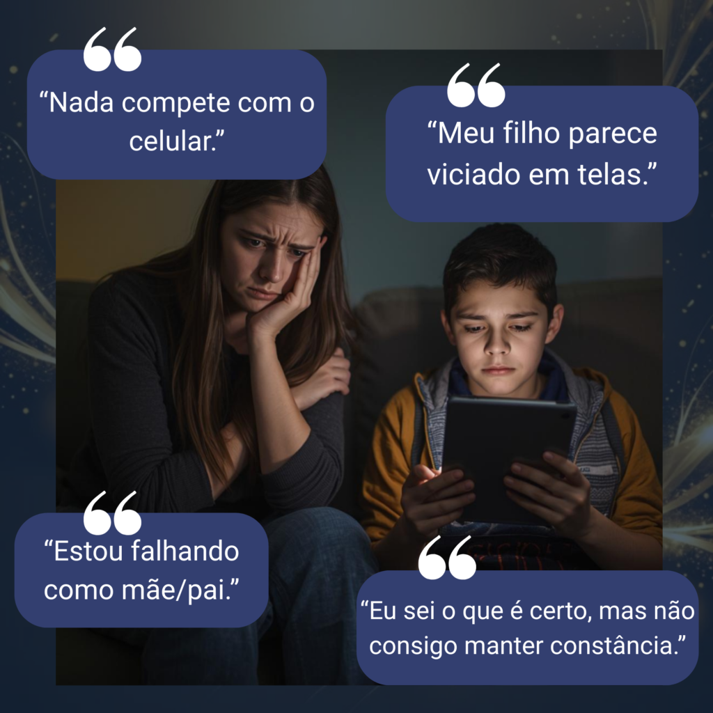 Você tenta fazer diferente, mas o cansaço e a culpa aparecem e as telas acabam vencendo.